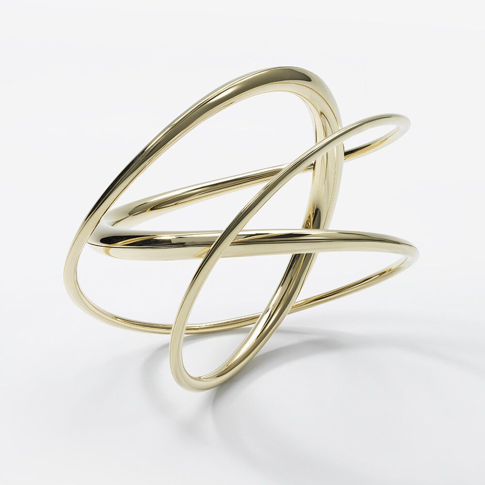 Michael Good is a master of anticlastic raising, a metal forming technique that creates sculptural jewelry designed to complement the human form. Exclusively available in Puerto Rico at Lido Jewelers, his pieces feature dynamic curves achieved by stretching and compressing sheet metal.